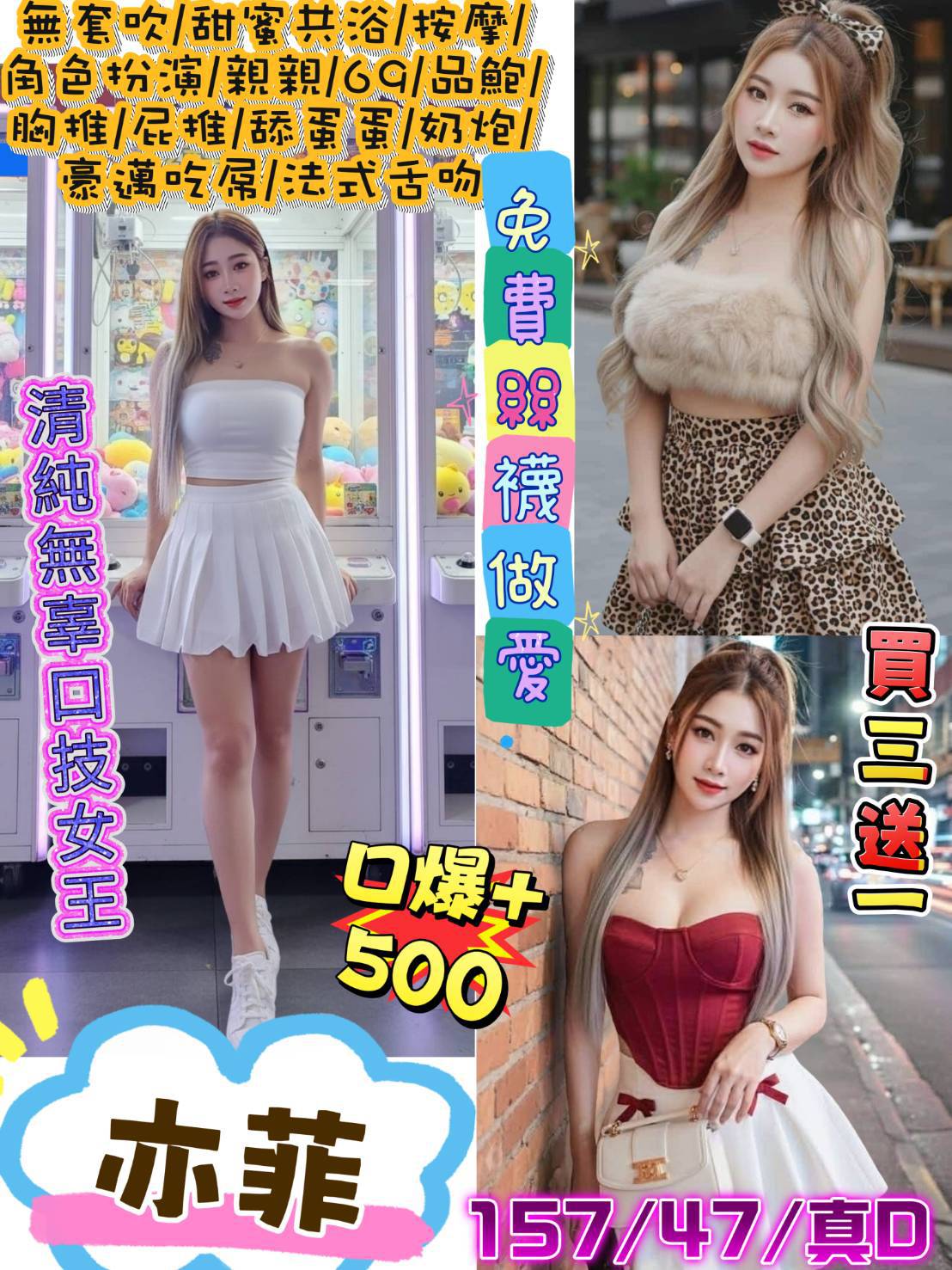 無套吹/戴套做/品鮮鮑/小親親/按摩/69/胸推/屁推/奶炮/殘廢澡